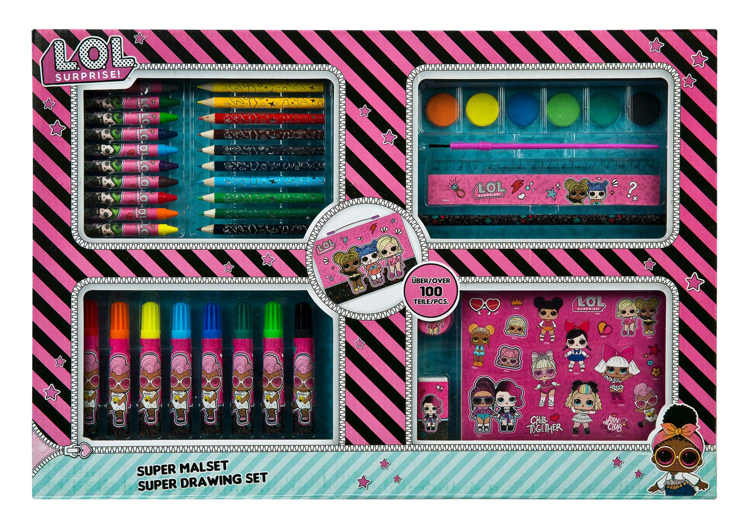 Undercover Lolo4101 Super Colouring Case L O L Surprise With Wax Crayons Fibre Tip Pens Watercolours Colouring Pencils Colouring Pages And Many Accessories Over 100 Pieces 1 Pack 1 Amazon De Toys
